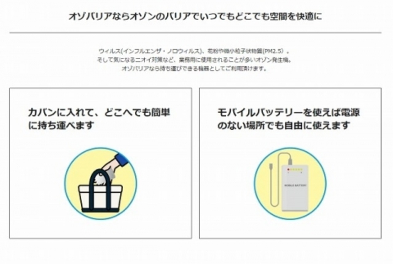 お出かけ先のホテルやオフィス・車の中でも、いつでもウイルス・花粉対策が出来ます。
